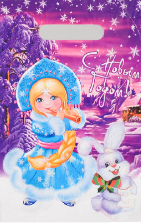 Новогодний пакет с вырубной ручкой, размер 40*47см, плотность 45мк. Пакет служит для упаковки косметических средств, подарков, игрушек. Продается по 50 штук.