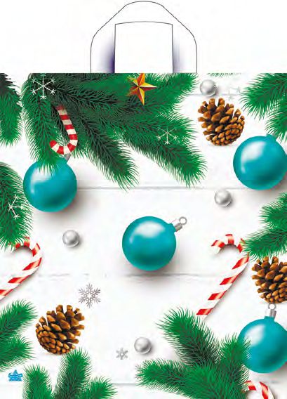 Новогодний пакет с вырубной ручкой, размер 40*47см, плотность 45мк. Пакет служит для упаковки косметических средств, подарков, игрушек. Продается по 50 штук.