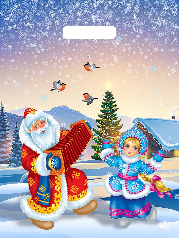 Новогодний пакет с вырубной ручкой, размер 40*47см, плотность 45мк. Пакет служит для упаковки косметических средств, подарков, игрушек. Продается по 50 штук.