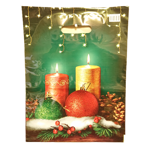 Новогодний пакет с вырубной ручкой, размер 38*45см, плотность 60мк. Пакет служит для упаковки небольших подарков, игрушек, косметических средств. Продается по 50 штук.