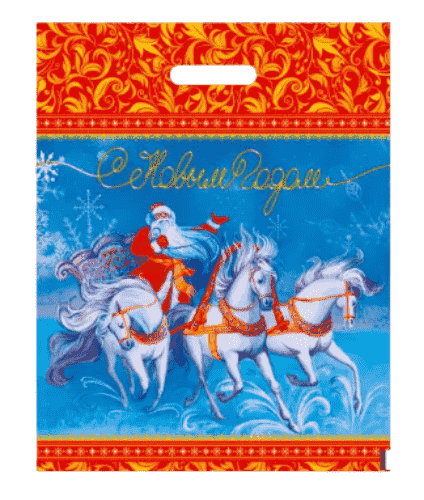 Новогодний пакет с вырубной ручкой, размер 38*47см, плотность 60мк. Пакет служит для упаковки подарков, игрушек. Продается по 25 штук.