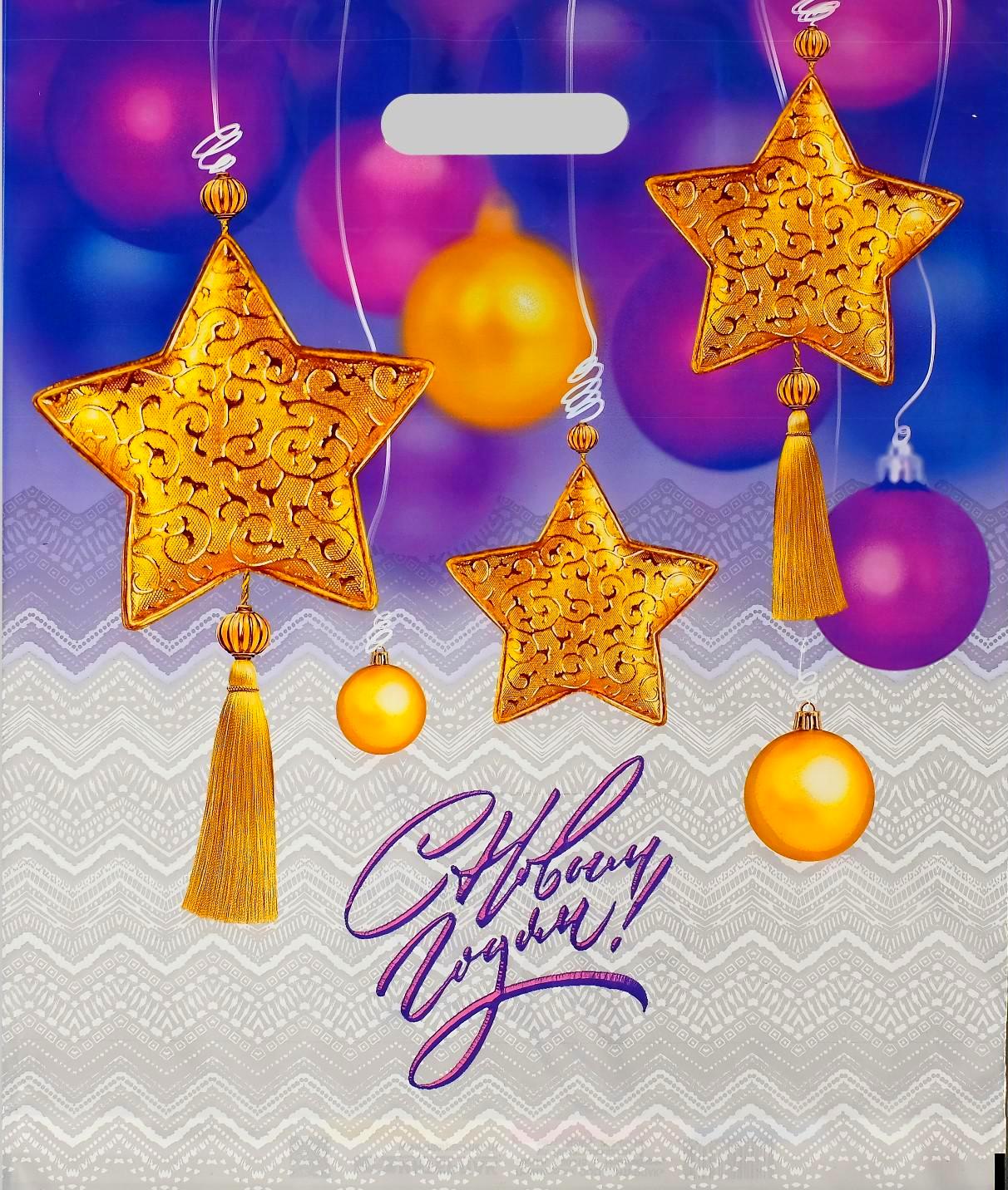 Пакет с вырубной ручкой новогодней тематики, размер 39*48см, плотность 60мк. Пакет служит для упаковки подарков, одежды, продуктов. Продается по 50 штук.