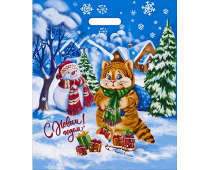 Новогодний пакет с вырубной ручкой, размер 38*47см, плотность 60мк. Пакет служит для упаковки косметических средств, бижутерии, небольших подарков, игрушек. Продается по 25 штук.