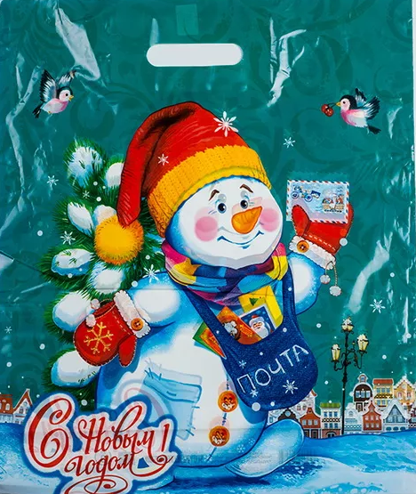 Новогодний пакет с вырубной ручкой, размер 31*40см, плотность 60мк. Пакет служит для упаковки косметических средств, бижутерии, небольших подарков, игрушек. Продается по 50 штук.