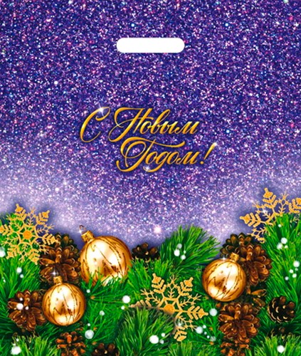Новогодний пакет с вырубной ручкой, размер 40*47см, плотность 45мк. Пакет служит для упаковки косметических средств, подарков, игрушек. Продается по 50 штук.