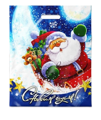Новогодний пакет с вырубной ручкой, размер 40*50см, плотность 80мк. Пакет служит для упаковки косметических средств, подарков, игрушек. Продается по 50 штук.