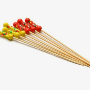 Деревянные шпажки «Пика» длиной 9 см для канапе «Рио» красно-жёлтого цвета от Tambien (100 штук в упаковке) используются для сервировки и украшения закусок и канапе небольших размеров.